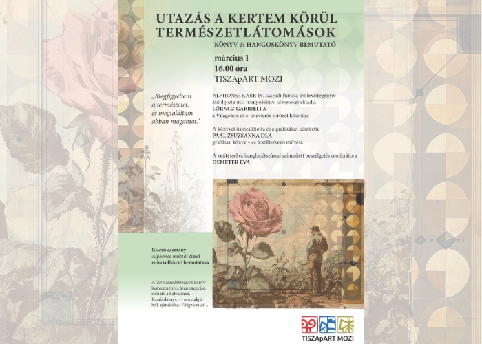 „Megfigyeltema természetet,és megtaláltamabban magamat.”ALPHONSE KARR 19. századi francia író levélregényét átdolgozta és a hangoskönyv idézeteket előadja LŐRINCZ GABRIELLA a Világokon át c. televíziós sorozat készítője.A könyvet összeállította és a grafikákat készítette PAÁL ZSUZSANNA DLA grafikus, könyv – és textiltervező művész.A vetítéssel és hangbejátszással színesített beszélgetés moderátora DEMETER ÉVA.Kísérőesemény: Alphonse múzsái című ruhakollekció bemutatása.A Természetlátomások könyv kedvezményes áron megvásárolható a helyszínen.Ráadáskönyv, — nosztalgiából, ajándékba: Világokon át…Szeretettel várunk mindenkit!