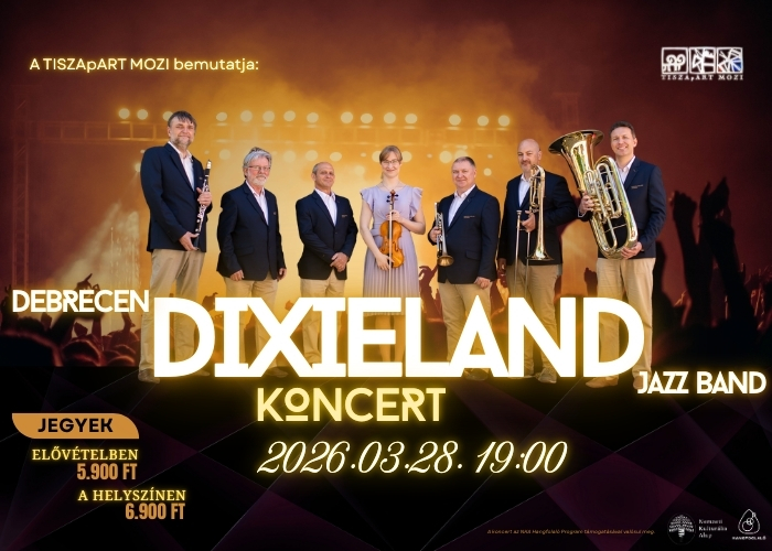 Az 1984-ben alakult Debrecen Dixieland Jazz Band az elmúlt 40 év alatt több mint 1000 koncertet adott, számos rádió, televízió és lemezfelvétele készült itthon és külföldön. A Debreceni Jazznapok állandó résztvevője, olyan jeles helyszíneken játszottak, mint a Drezdai Dixieland Fesztivál, vagy a New Orleans-i Jazz and Heritage Fesztivál. A 25. Megéve-i Jazz Verseny közönségdíjasai lettek 2018-ban.Jegyek elővételben 5900 Ft-ért, a koncert napján 6900 Ft-ért vásárolhatók!A koncert az NKA Hangfolaló Program támogatásával valósul meg.Szeretettel várunk mindenkit erre a hamisítatlan dixieland parádéra!